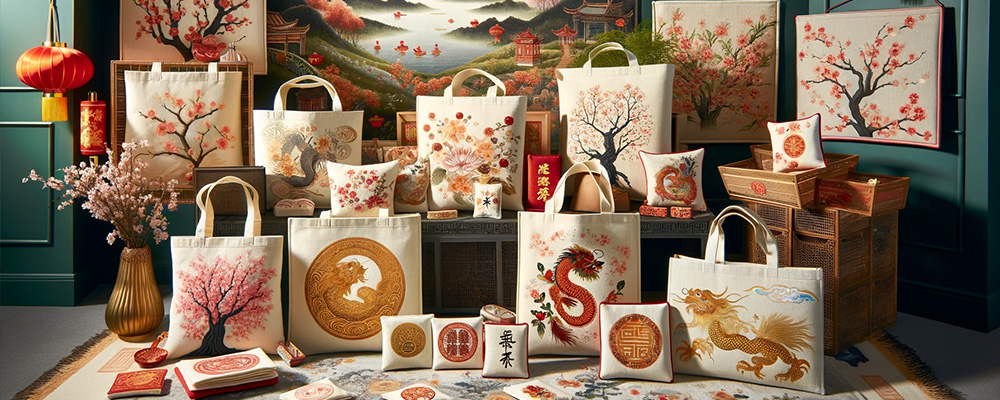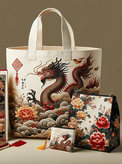 Shopping bags dengan cetakan kaligrafi China yang artistik bisa menjadi pilihan hadiah yang elegan. Kaligrafi tersebut bisa berupa kata-kata bijak atau ucapan selamat tahun baru dalam bahasa Mandarin, membuat tas ini tidak hanya berguna tetapi juga memiliki nilai estetika tinggi.