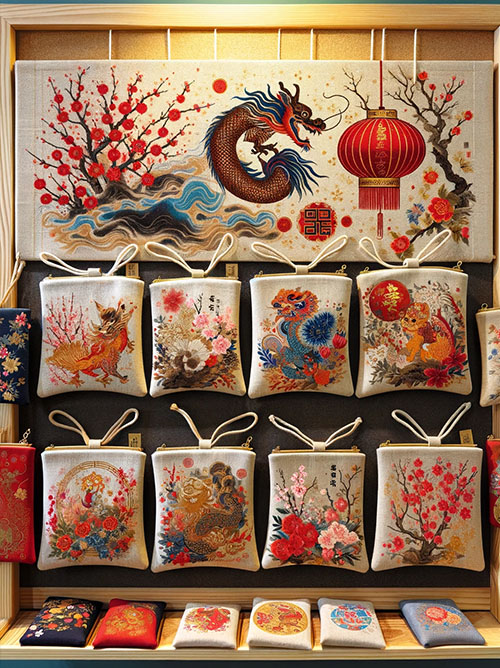 Pouch multifungsi dengan gambar shio sesuai dengan tahun Imlek ini bisa menjadi hadiah personal yang menarik. Misalnya, jika tahun ini adalah tahun Naga, pouch bisa didesain dengan gambar Naga yang anggun dan kuat.