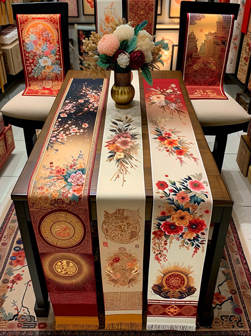 Table runner yang dicetak dengan motif festival musim semi atau elemen-elemen tradisional China bisa menjadi pilihan hadiah yang memperindah meja makan saat perayaan Imlek.