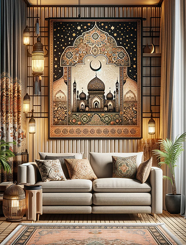 Banner atau lukisan dinding adalah cara fantastis untuk menambah sentuhan perayaan di rumah Anda. Pencetakan kain digital kami memungkinkan untuk desain berkualitas tinggi dan detail yang menangkap esensi Idul Fitri. Dari lanskap Islam hingga ayat dan pesan perayaan, lukisan kain ini menciptakan titik fokus di setiap ruangan.