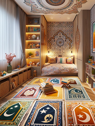 Shalat adalah bagian penting dari Idul Fitri, dan sajadah cetak custom kami menggabungkan spiritualitas dengan daya tarik estetika. Pilih dari berbagai desain yang berkaitan dengan kesucian shalat sambil menambahkan keanggunan ke ruang mushola di rumah Anda.