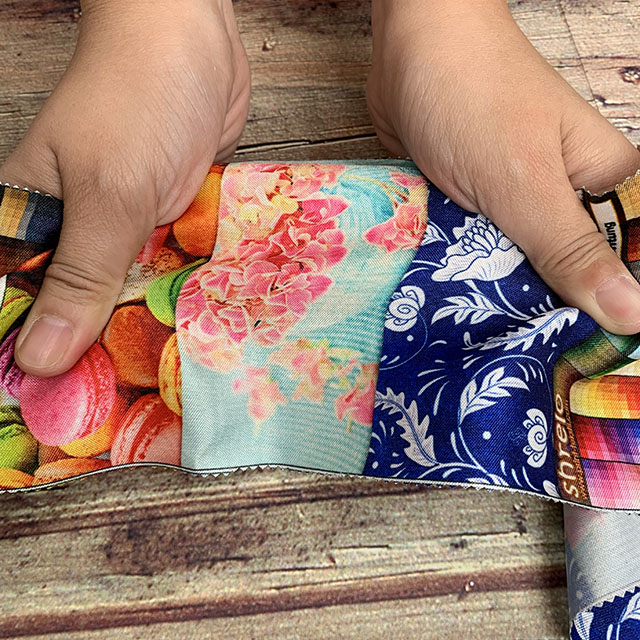 Kegunaan : Kain ini cocok untuk gaun, atasan (tops), jaket fancy, rok, cushion, home decor, tirai hias, table runner, bed runner, label, clutch dengan busa ati, pouch, bolero, vandel, tali medali, tali piagam, sash, long dress, dakimakura / guling foto, dasi, dan lain-lain. |